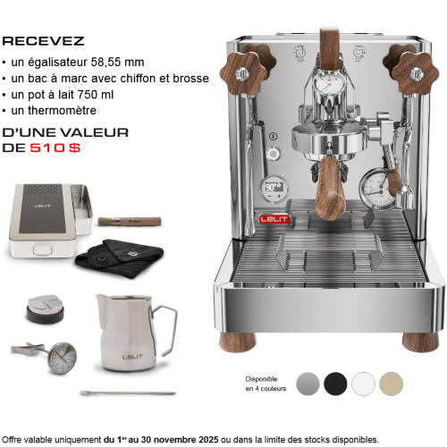À L'achat de Lelit Bianca, obtenez un ensemble cadeau d'une valeur de 510$ contenant: