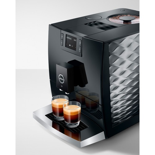La façade de forme convexe et concave attire l'attention. Le réservoir d'eau et la plateforme pour tasses reprennent le design ondulé et confèrent élégance et intemporalité à la machine automatique à café . Un design cohérent en tous points, qui tire son origine de la catégorie haut de gamme.